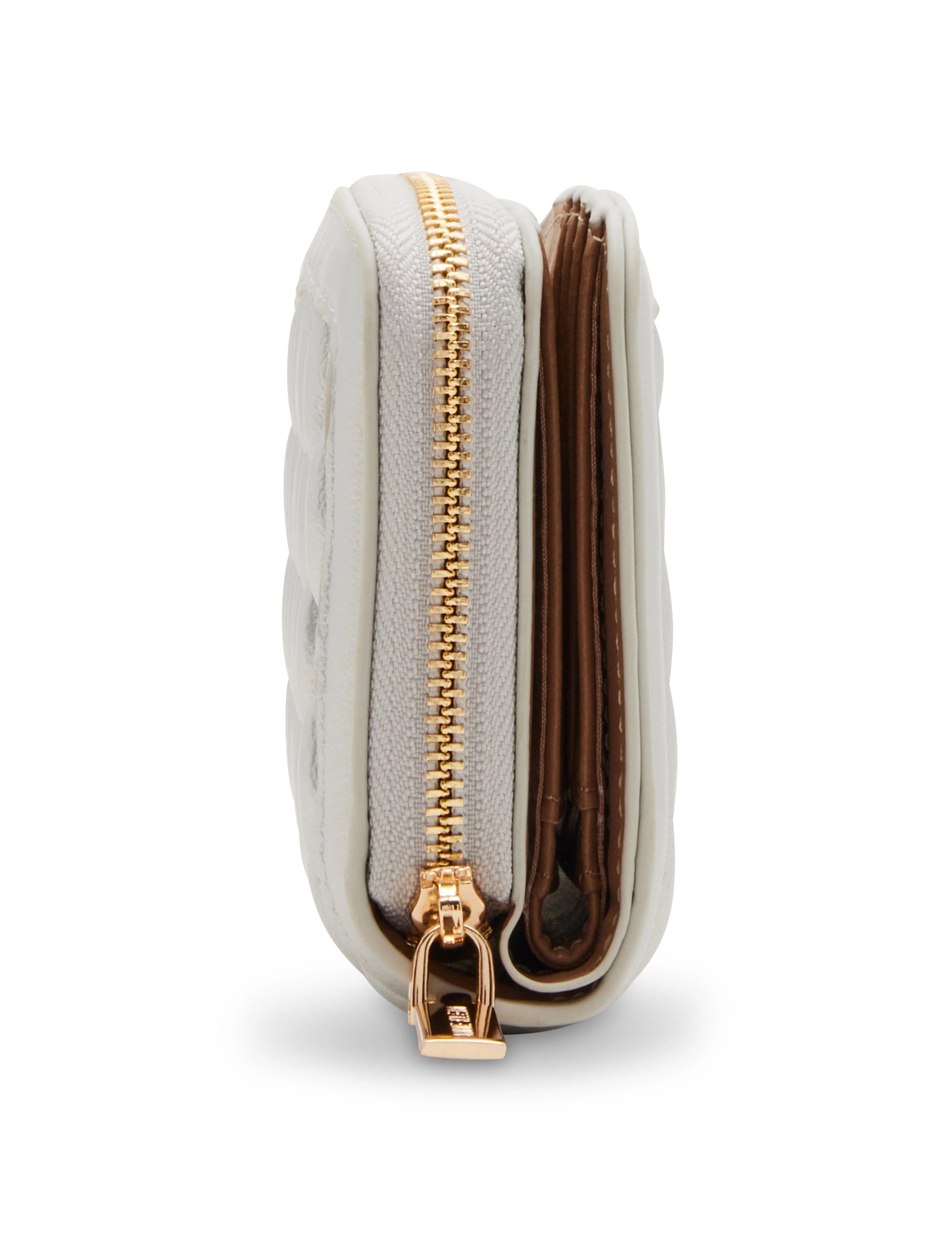This charming small wallet features a ruched quilted design that adds a touch of texture. This design includes a secure zip closure that opens to reveal a well-organized interior. Available in multiple colors. Add to cart now