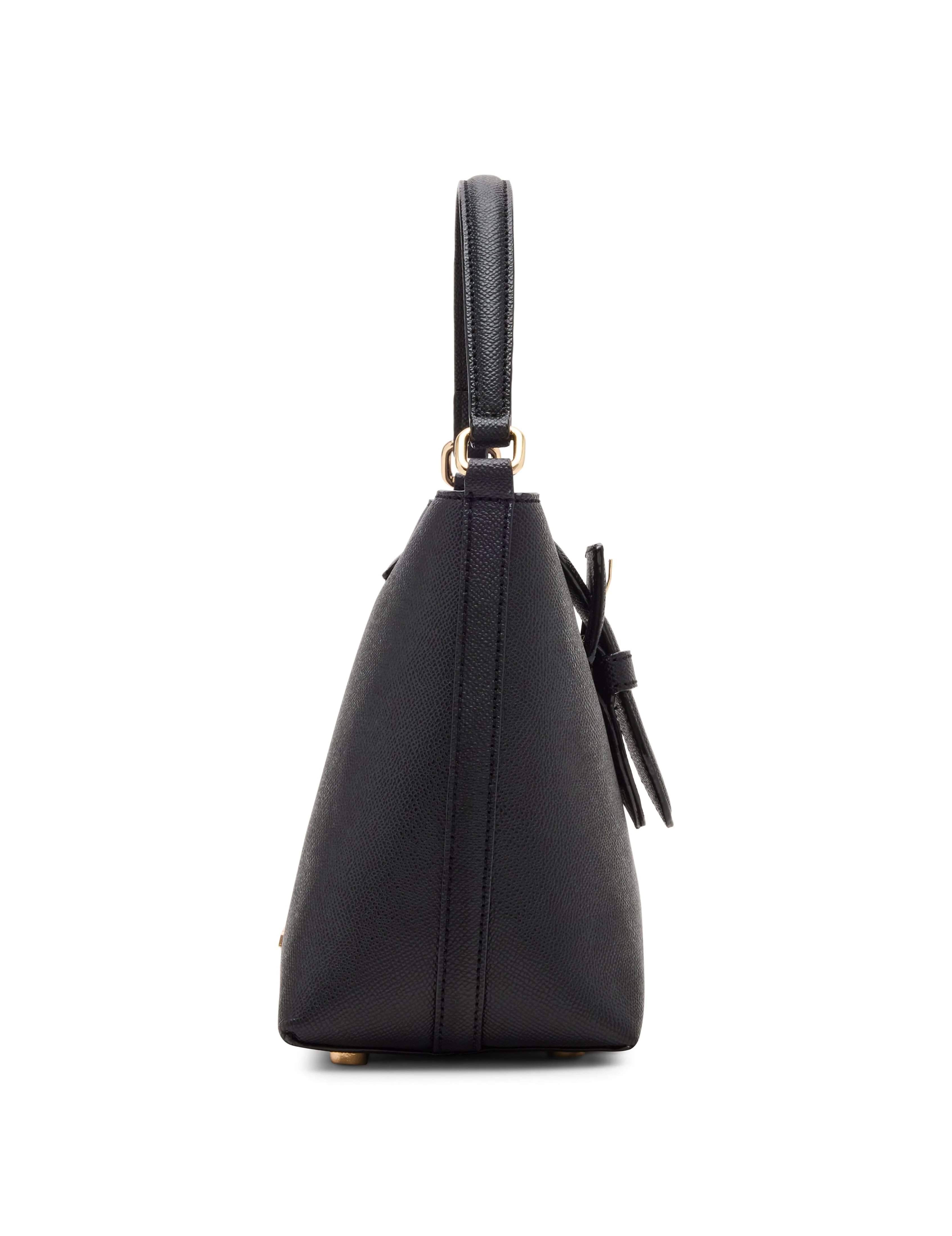 This small covered buckle bucket is the perfect everyday bag. It's compact yet spacious. Fits a cellular device, wallet, keys and all your daily essentials. Perfect for brunch or casual outings.